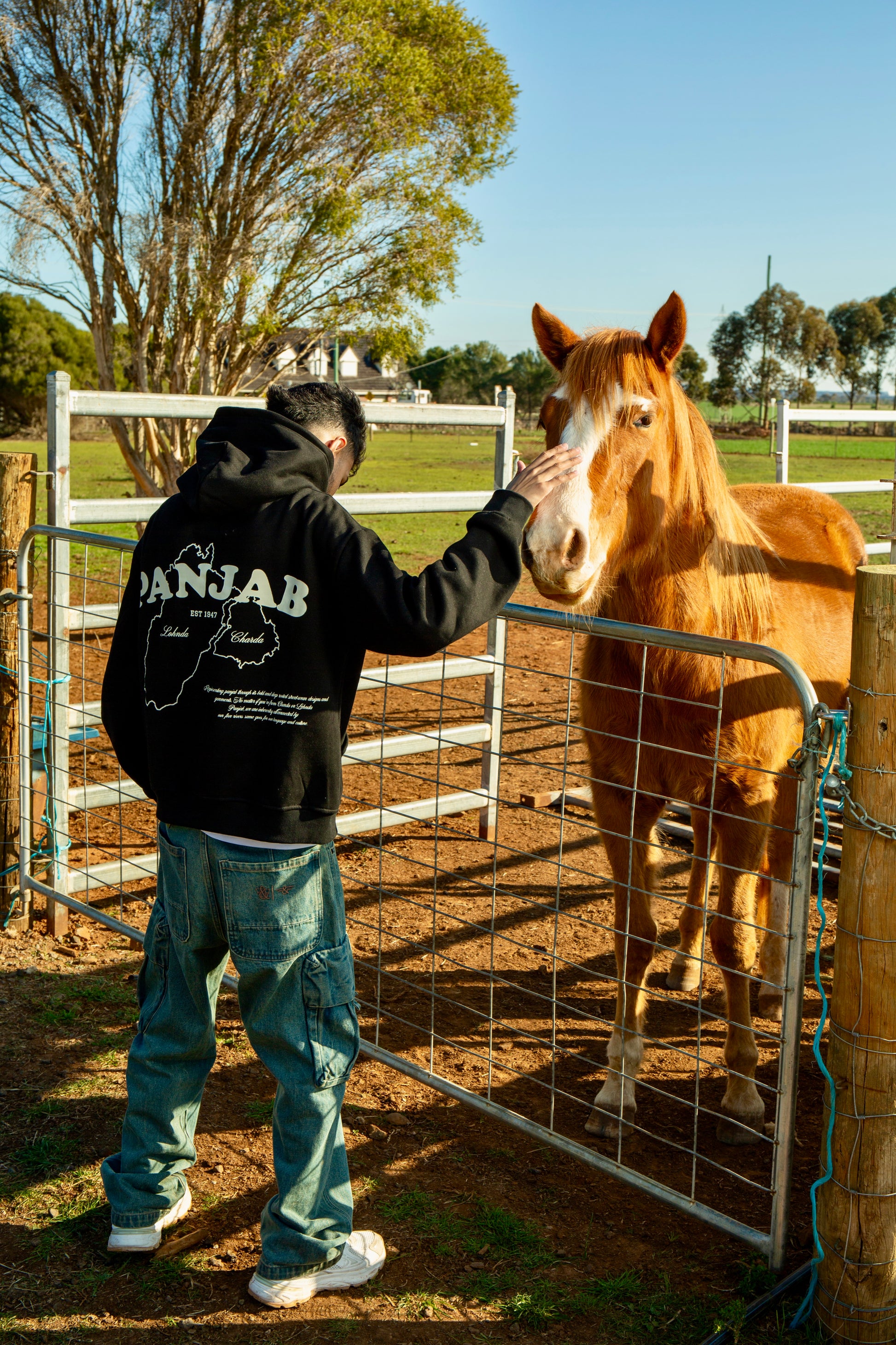 Embrace your roots with this bold and meaningful hoodie, designed to celebrate the rich heritage of Panjab. Made from 100% high-quality cotton, this hoodie offers exceptional warmth and comfort, perfect for any season. The back features a striking graphic representing Charda and Lehnda Panjab, symbolizing the unity and strength of both sides of the region. The front of the hoodie is adorned with a minimalist Panjab logo, adding a subtle yet powerful representation of your pride.